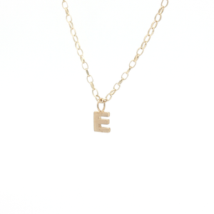 A gorgeous 9ct Yellow Gold plain 'E' Initial pendant paired with a mini belcher style 18'' chain, also in 9ct Yellow Gold.