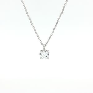A stunning brilliant-cut lab diamond solitaire pendant, set in 9ct white gold. This pendant features a 0.50ct G/H colour and SI clarity brilliant-cut lab diamond in a white gold four claw setting.