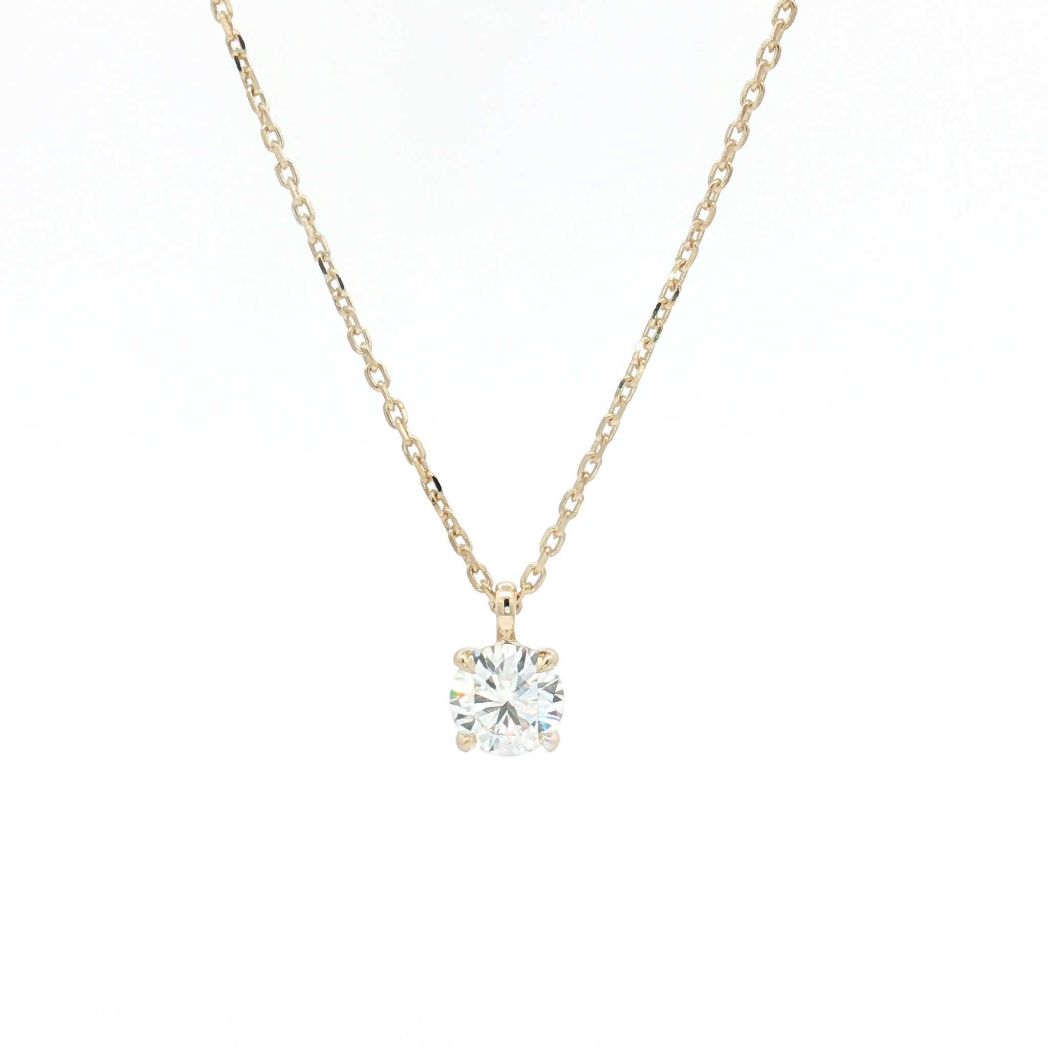 A stunning brilliant-cut lab diamond solitaire pendant, set in 9ct yellow gold. This pendant features a 0.50ct G/H colour and SI clarity brilliant-cut lab diamond in a yellow gold four claw setting.