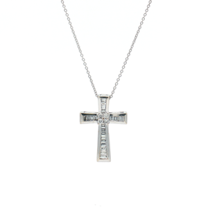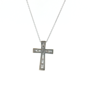 This gorgeous vintage 18ct White Gold Cross features a total of 0.20ct of diamonds.
