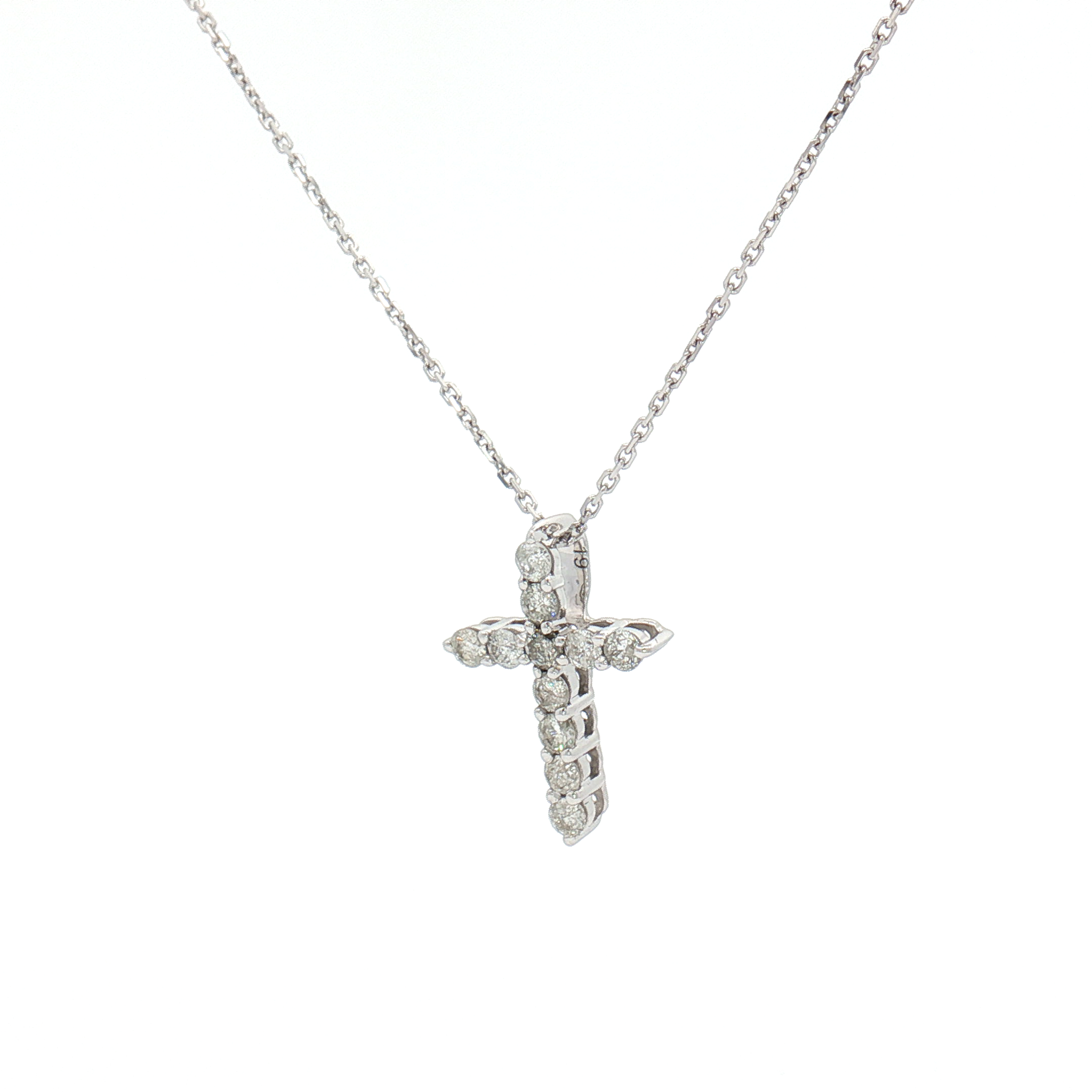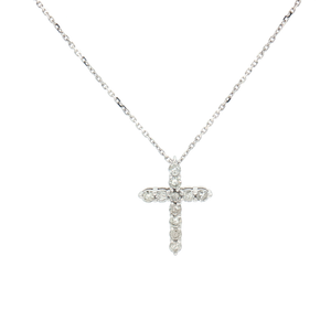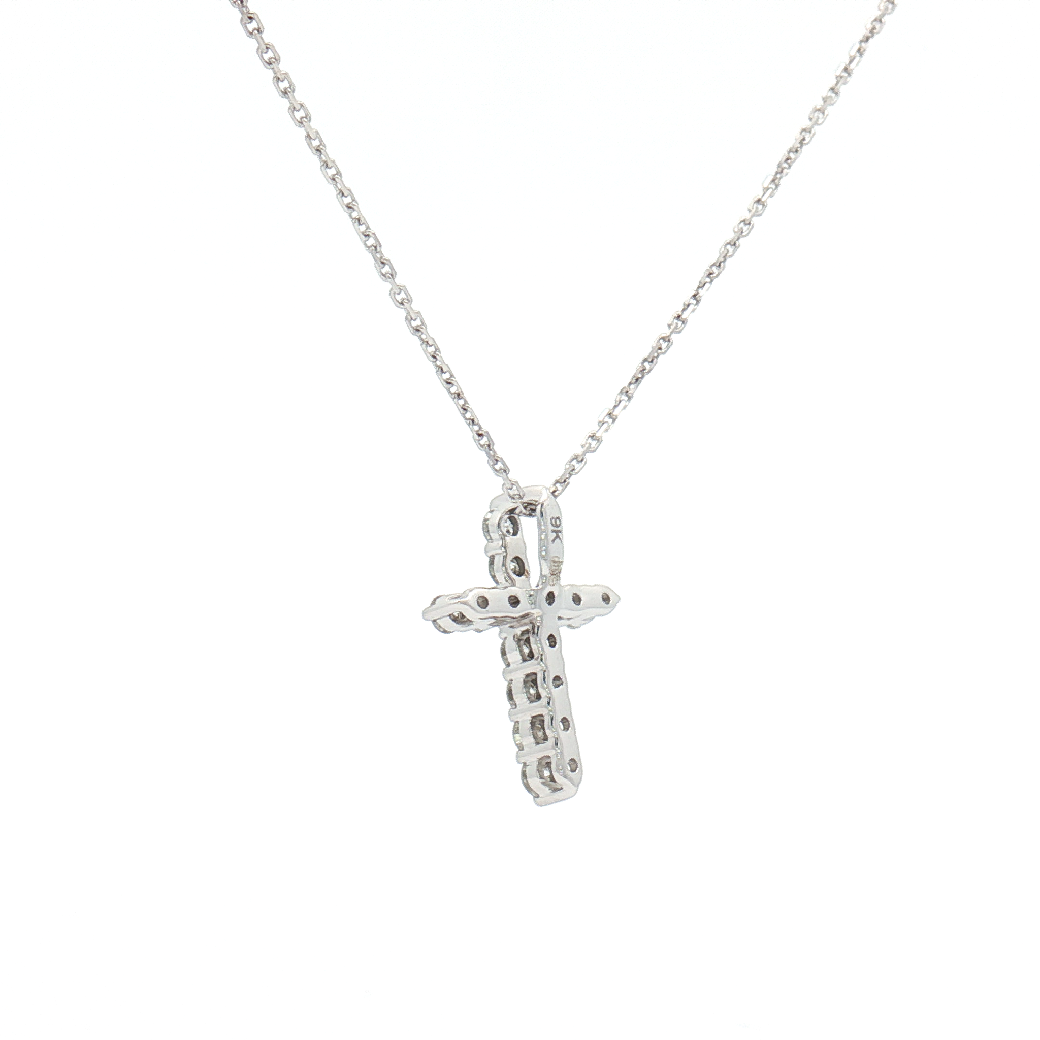 A beautiful 0.27ct diamond cross pendant with brilliant-cut diamonds set in 9ct white gold. The diamonds are G/H in Colour and SI Clarity. This pendant is completed with an 18 inch chain in 9ct white gold.