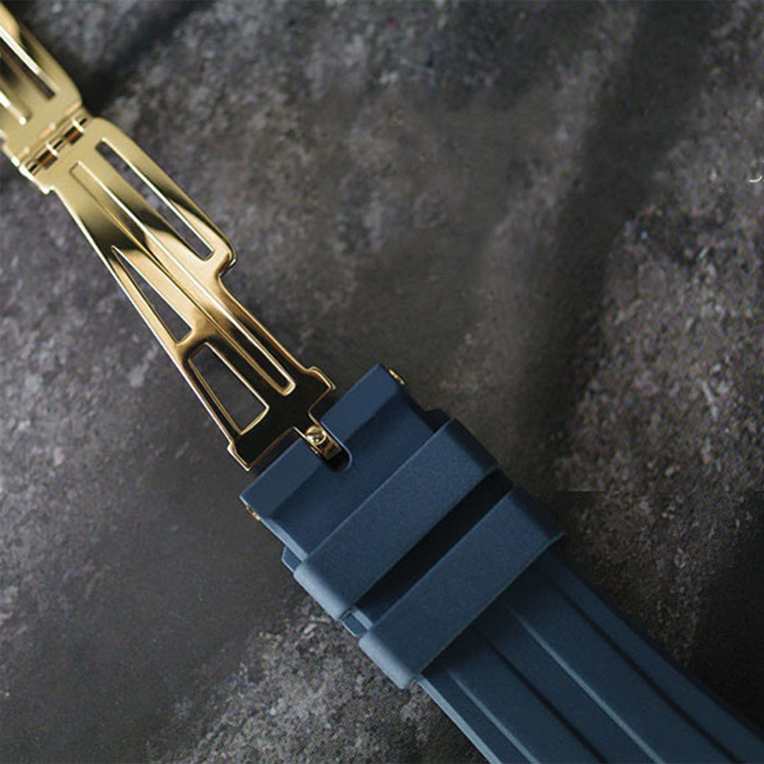 Crafted completely in rubber, it means that these straps can be worn in a pool or in the sea, without the worry of damaging them, and are a lot more versatile than their classic counterparts.