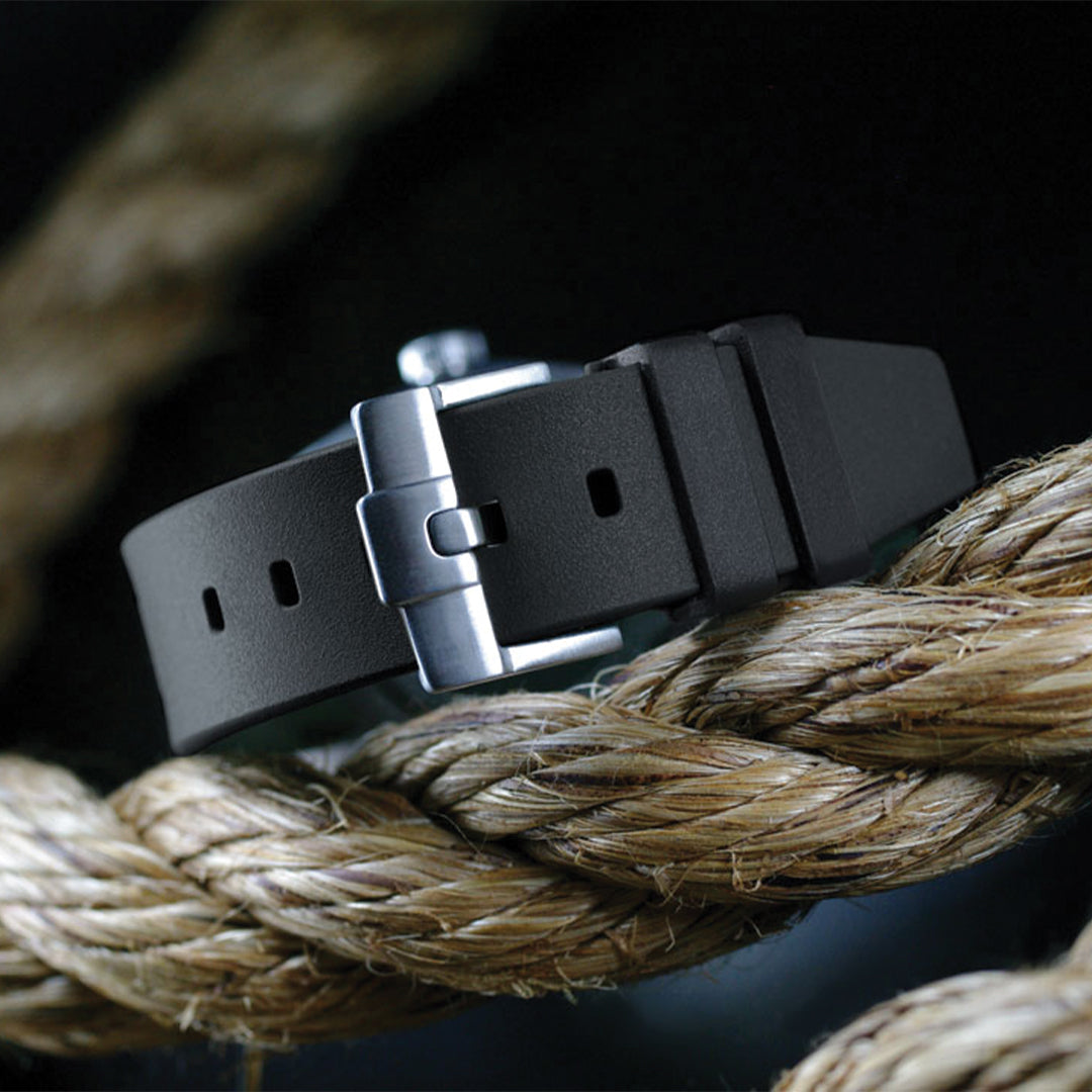 Rubber B watch straps are made from premium vulcanized rubber and feature an integrated solid titanium insert. This allows the strap to tick all the practicality boxes and fit perfectly on the wrist, achieving a motionless, rotation and gap free finish, whilst retaining its classy aesthetics.
