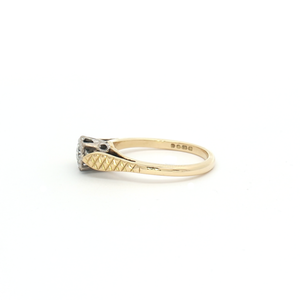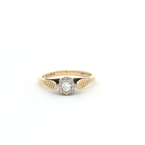 A stunning vintage 18ct yellow gold brilliant-cut natural diamond solitaire ring weighing 0.12ct, in a four claw white gold setting with G/H colour and SI1 clarity Finger size J1/2.