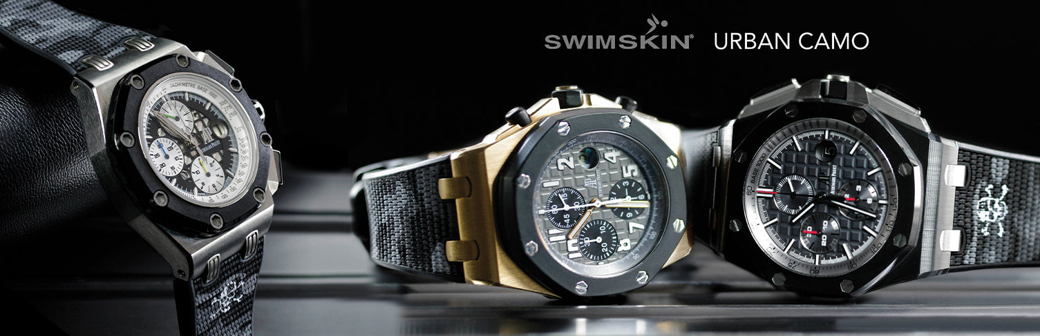 All Rubber B styles for the 42mm Audemars Piguet Royal Oak Offshore are made using SwimSkin® engineering, which means the strap looks like a classic material like alligator or twill, but is made from vulcanized rubber.