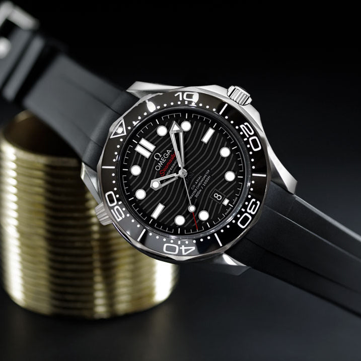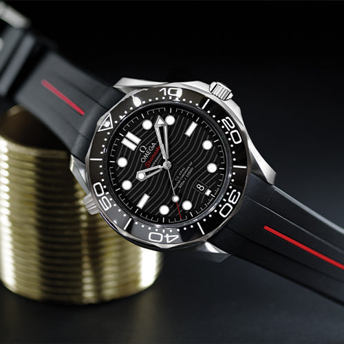 There are two Rubber B strap style options available for the Omega Seamaster 300.