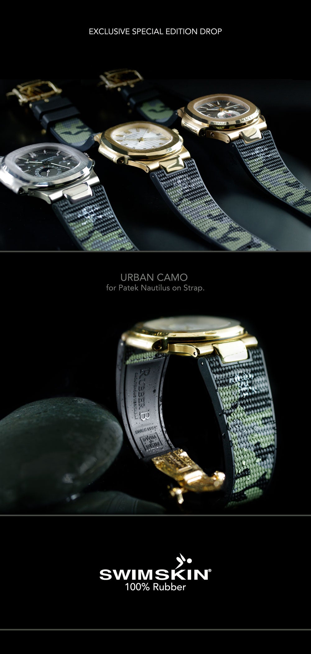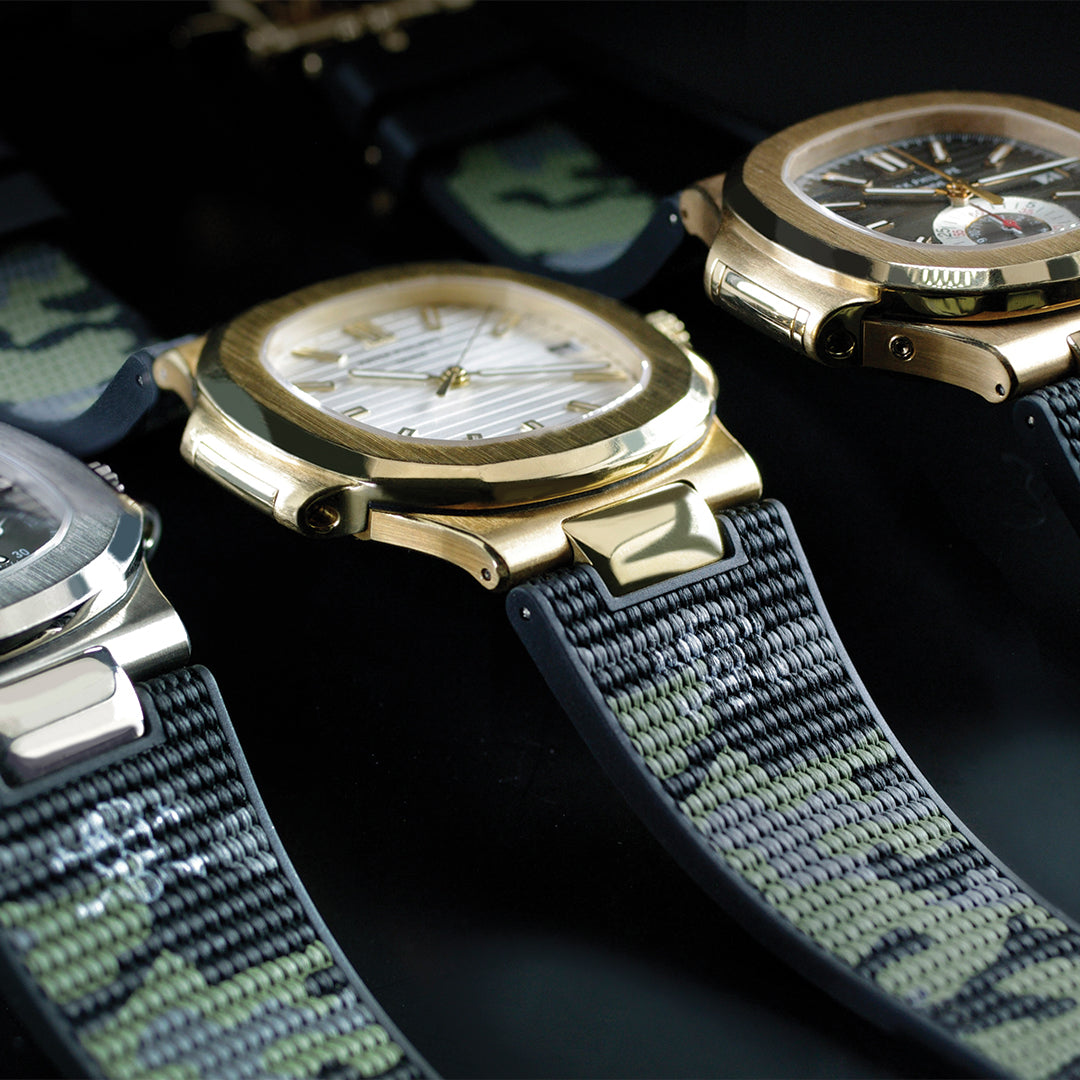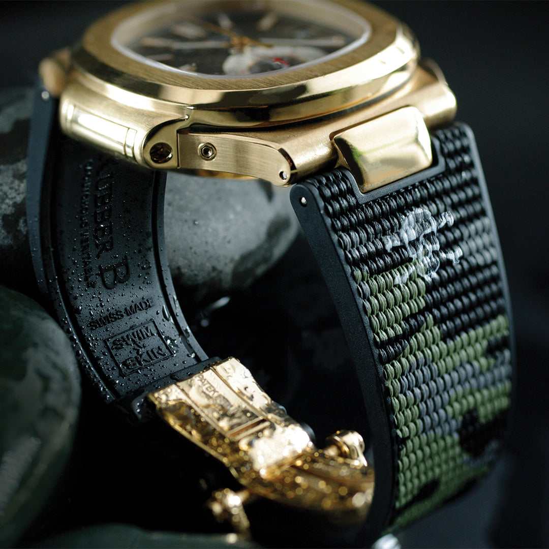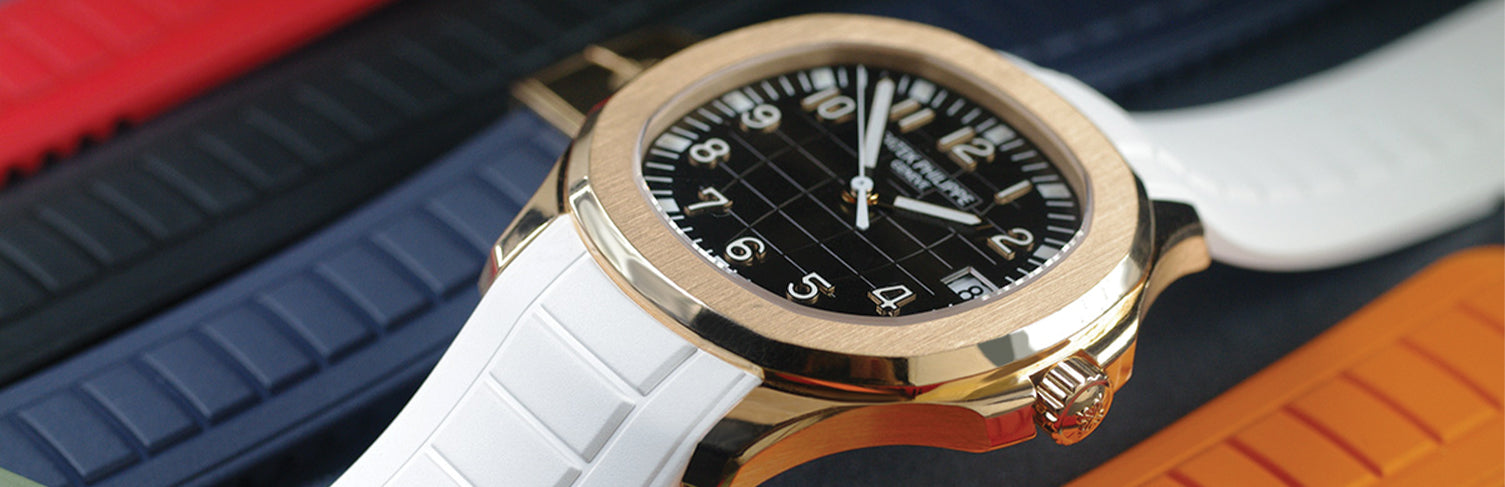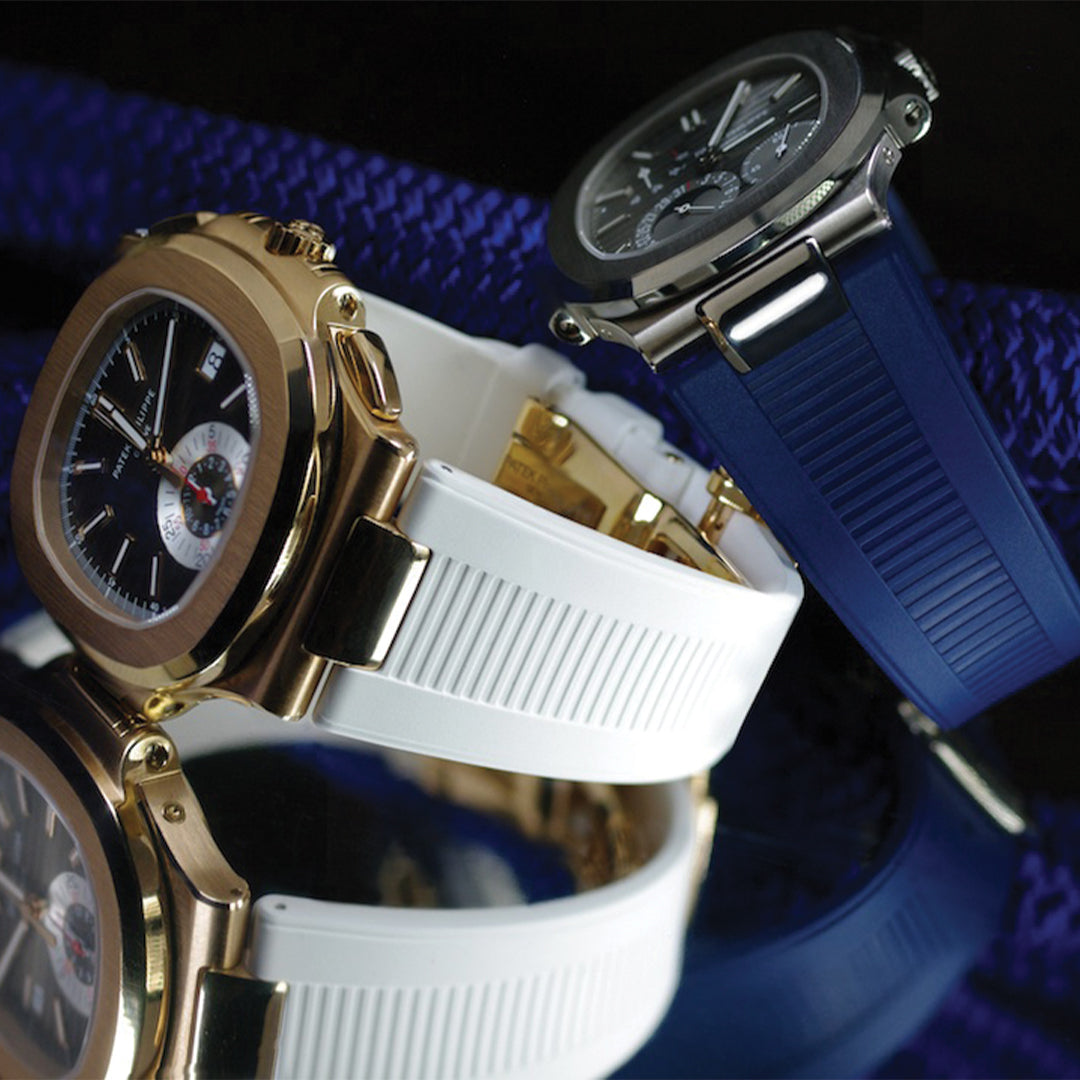 Browse Rubber B straps for Patek Philippe. Available for the Nautilus and Aquanaut collections, scroll down to find out more about the Rubber B strap options available for Patek Philippe watches.