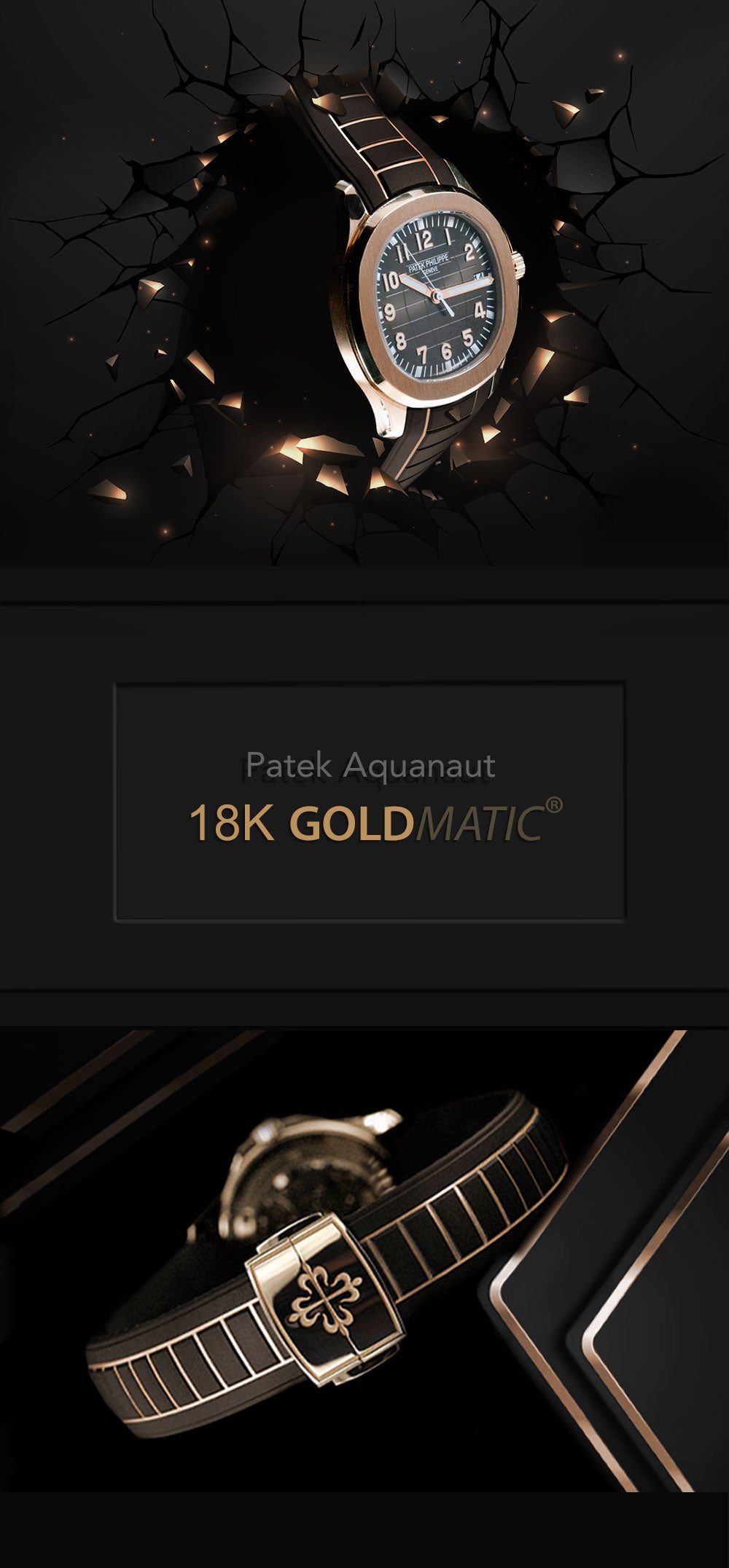 The Goldmatic® strap is also available for the Aquanaut 5167 offering a stunning black/rose gold colourway, the perfect addition to a rose gold case.