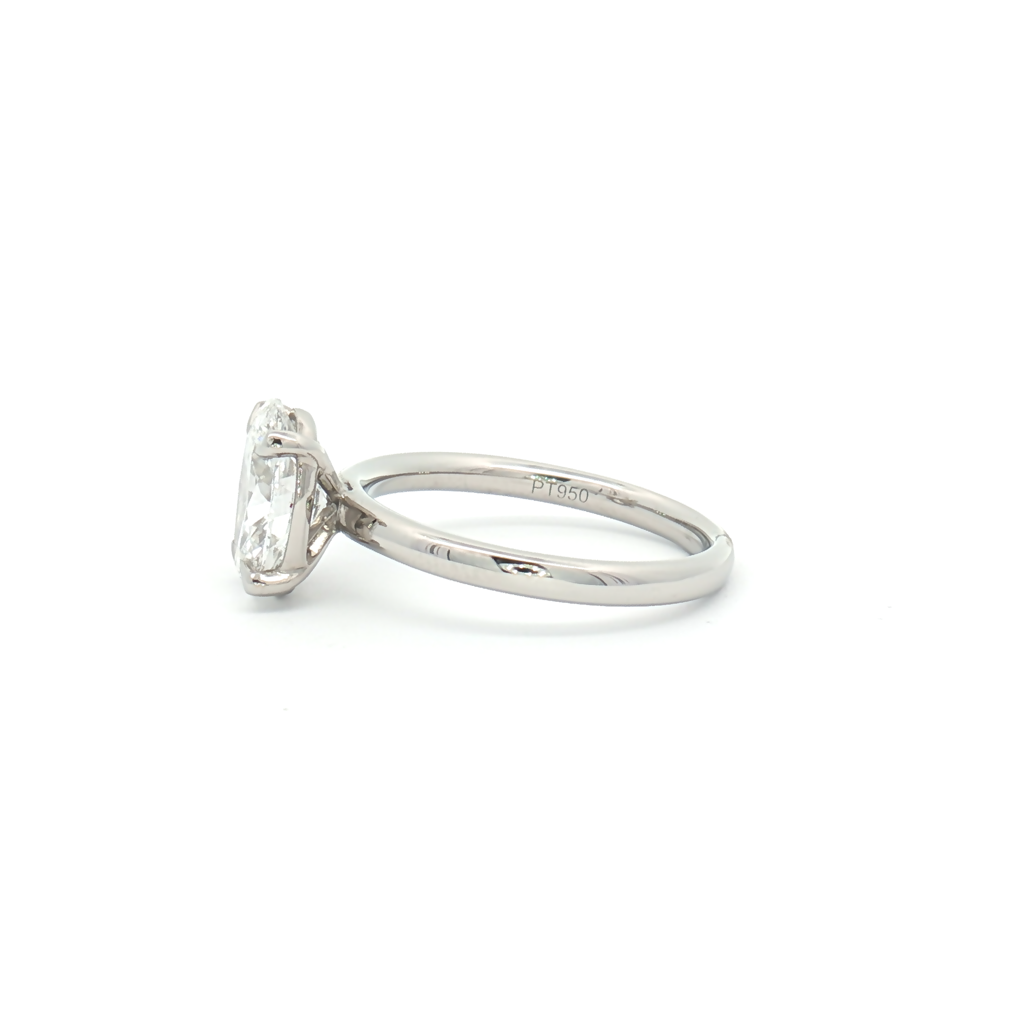 An Platinum Oval-Cut lab-diamond engagement ring. The centre stone is in a four claw setting and is certificated 1.71ct, D colour, VVS2 clarity. Finger size M (Resizing available).